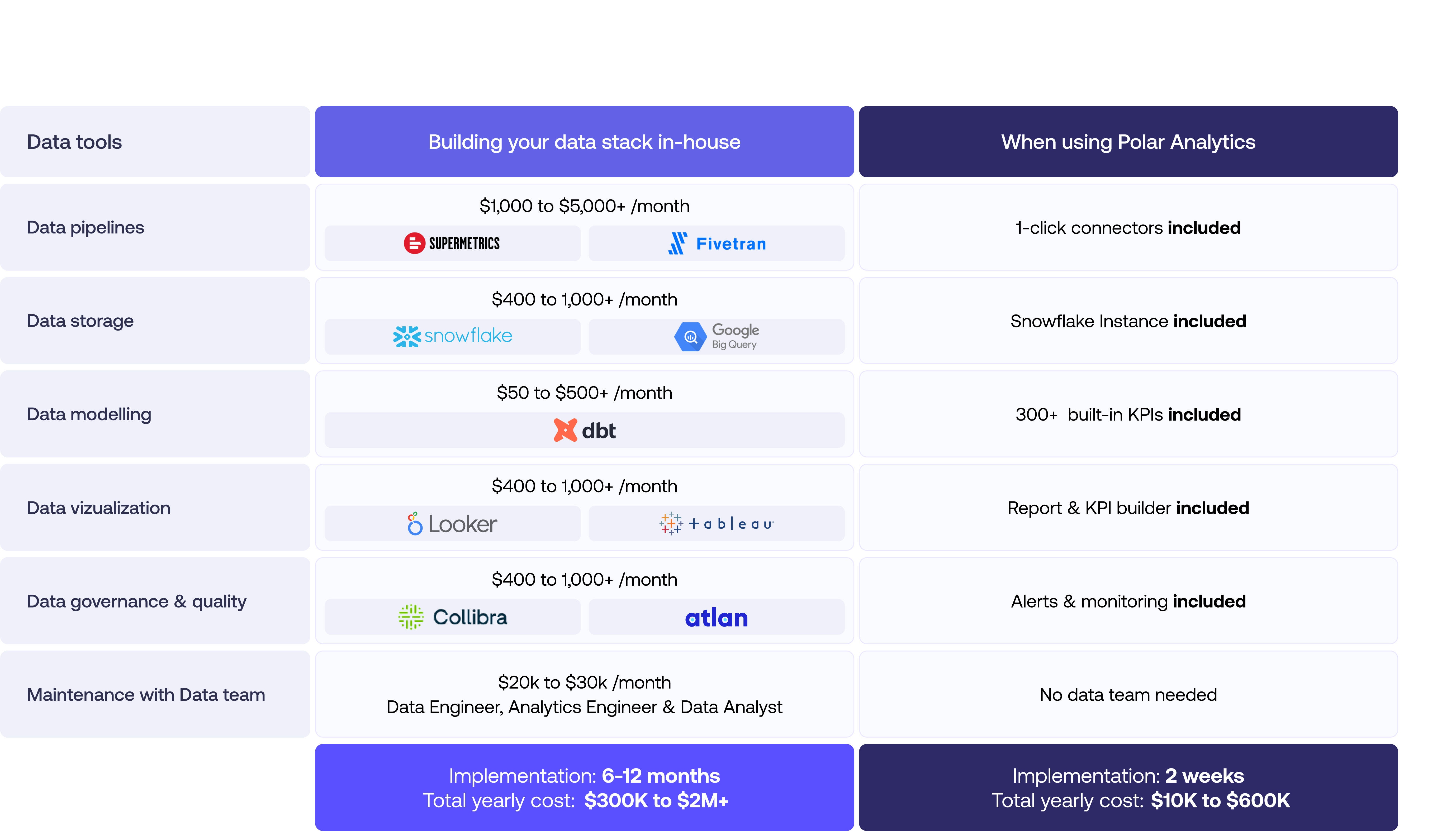 In conclusion, the traditional approach of building an in-house data stack for eCommerce brands involves substantial costs and effort.